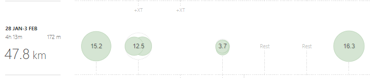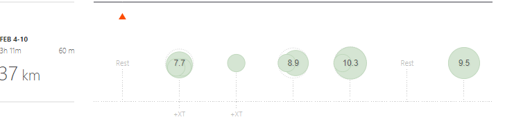 Total Training: 254.6k Week 5: 47.8k Week 6: 37.0k
