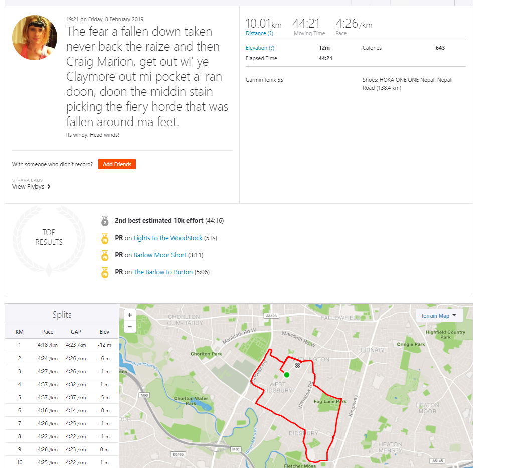 On Friday I did a fast 10k. It was very windy so happy with that time and I didn’t push as hard as I intended. Still my 10K PB is from a 21K race so have some time to knock off. Strava says this was my 2nd fastest 10k (44:16) and it felt OK, could have gone a lot further without slowing. I hope you enjoy my run names.