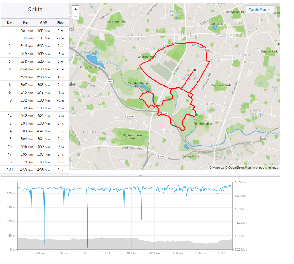 So that was a lot of running. As I mentioned last week the long run on Monday should have been on Sunday, so this balances out last weeks low mileage.