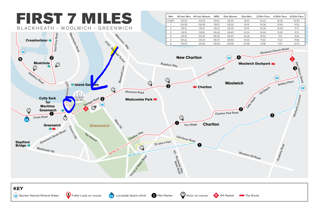 One of the main bits I remember from the start is running around the cutty sark. The crowds were amazing. Although the pain/worry was there I was finding it easy to take my mind away. As well as some television cameras on giant arms there were a lot of bands too and the drums would give me a real adrenaline boost.