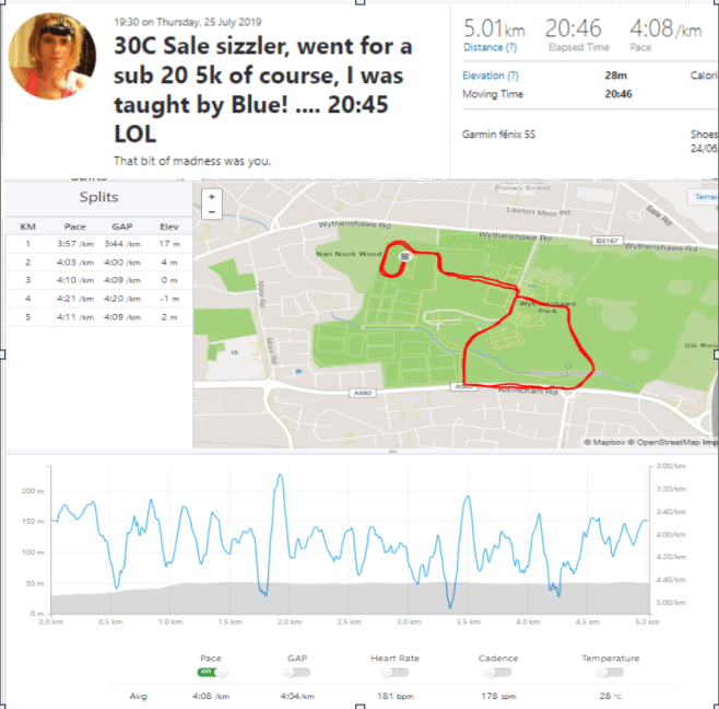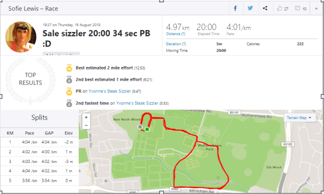 This year after doing the London Marathon I wanted to focus on 5k. I signed up for all 4 of the Sale Sizzlers. They are held 2 weeks apart, the same course in the summer and usually live up to their name of being sizzlers.